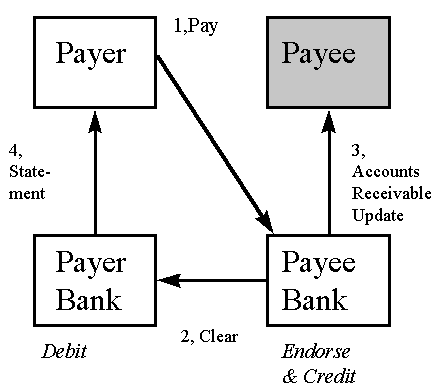 In Figure 3 above, the Payer receives a bill/invoice from payee, issues an Electronic Check, and sends it to the payee's bank, either directly or via a lockbox. The Payee's Bank then sends accounts receivable information to the payee and clears the payment with the payer's bank. In this scenario, there may be no payee endorsement.