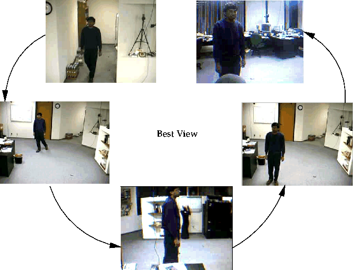 The client interface to the system is shown in Figure 4. This interface allows the user to perform a variety of queries related to the position and velocity of the dynamic objects (people) in the environment. As illustrated in Figure 4, queries include requesting notification when a person enters a selected region and maintaining the trajectories of selected objects. The system also allows the user to request several different types of best view (e.g., proximity, frontal, etc.). The result of a proximity best view request is given in Figure 5.