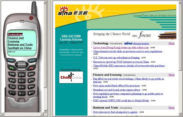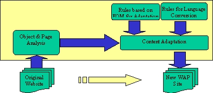 Many research results have been presented in this area. W3C's "HTML 4.0 Guidelines for Mobile Access" [18] is a series of suggestions of adapted authoring for WAP. However, it has no consideration to the existing web contents. Marcin, etc. [19] defined some tag-based conversion rules, but it is not a general method. Eija, etc. [20] designed an HTML/WML conversion proxy server. However, the proxy server only works for some certain applications.