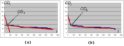 2) Polynomial simulation. As shown in Figure 5(b), we simulate the diagram with a polynomial curve (second power or more). That is, the average distance between the polynomial and the original curve of OD is minimized. Then the y-coordinate of the inflexion with the largest curvature of the polynomial curve is OD0.