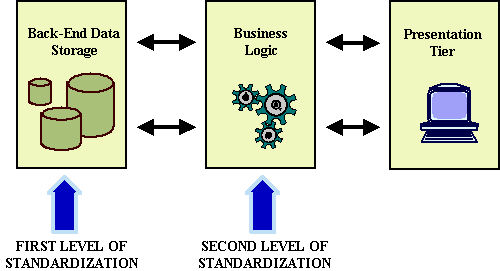 Figure 2: Three tiered architecture and standardization levels