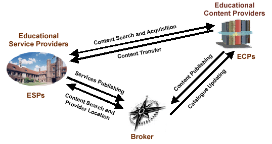 Brokers that intermediate between ECPs and ESPs or between ESPs and Learners are developed from basic services offered by four subsystems: