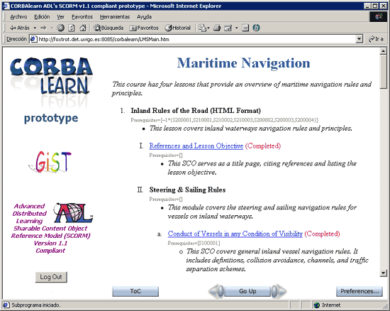 Figure 20: Learner interface showing the course TOC