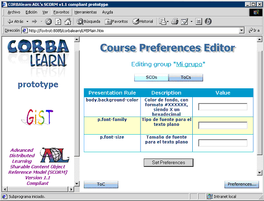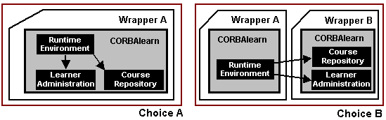 At the time of this writing, the whole set of CORBAlearn specifications have been implemented and tested from a Web-based wrapper following the approach shown in the right side of Figure 17. As an example of the CORBAlearn usability, we briefly describe along the next paragraphs how a product compliant with the RuntimeEnvironment specification can provide (CORBAlearn-compliant) WWW-based content delivery and tracking tools.