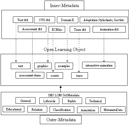 Of these, the LOM standard[1] is purported to describe a LO from a mostly external viewpoint, and includes such elements as: General, Rights, LifeCycle, Technical, Educational, Relations, Classification, Annotations, and Metametadata. The scope of this standard is limited on its internal views of the LO, which remains an opaque entity. Other researchers [10] have also made similar observations. In practice, however, LO are increasingly dynamic, interactive and intelligent entities, and users in different roles require varying levels of access to these internal views.