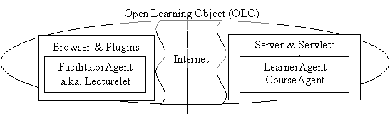 Operationally, OLOs rely on a web-centered client-server model where computational costs are shared by both server and clients [12] . The client-side is implemented using Javascript, with XML documents describing interaction and animation specifications, SVG graphics, and the corresponding plug-ins. The server-side generic Agents are implemented using Java servlets and are driven by XML mark-up that allow them to perform inter-LO navigation, content adaptation ,and learner interaction support and modeling. A persistent back-end native XML database with secure access-controls stores Learner Interaction Trace results within the LIP-based Learner model. A Learning Object Virtual Exchange repository (LOVE [13] ) stores and makes publicly accessible LOs and their metadata descriptions.