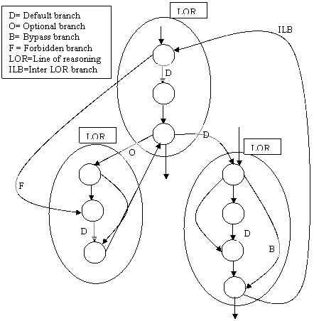 The Animation is organized as a two level hierarchy. Besides primitive states we have macro states called Line-of-Reasoning(LOR) states. A LOR encapsulates a logical argument or explanation that should run through-out all its primitive states in order to be complete and make sense. The LOR idea is close to the concept of Script as defined by Schank [28].