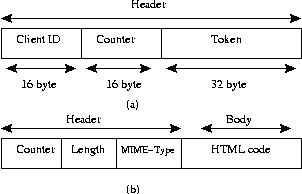 Whenever the browser forwards an HTTP request for a protected web page, the web server answers with a message which activates the plug-in. At this point the plug-in constructs the meter-request which is handled by the CGI module. If the authentication is performed successfully the CGI program returns the home page of the monitored web site. As you can see in Figure 1, the communication overhead due to the additional bytes needed for the meter request/response is very small.