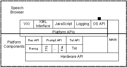 The speech browser platform executes the VoiceXML pages to provide the speech service to the caller connected over the telephone network. The Client logically consists of four parts: