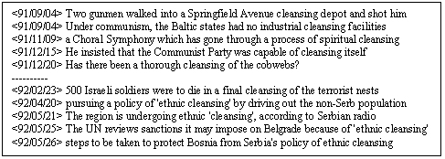 Figure 2: Concordances showing change in reference for "cleansing" from 1992