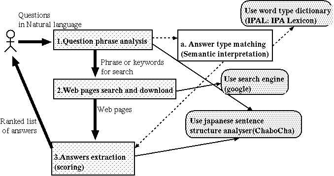 Our system is trying to answer question such as ``how many meter is the summit of Mount Fuji?'', ``Which highschool is the baseball player Matsui from?'' or ``Who is the prime minister of Japan originated from Iwate?'' but not the question such as ``How to cook a curry rice?''. Indeed, the last question is difficult to answer by the existing question answering systems.