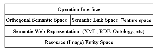 An image reflects its semantics in: features, content, semantic category (reflected by semantic-coordinates in the semantic space), and inter-semantic-relationships.