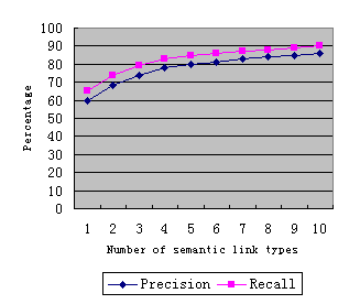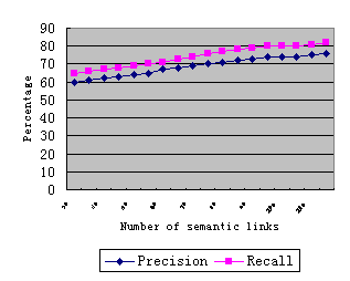 with the change of the number of semantic links. Figure 3 shows the recall and precision change with the