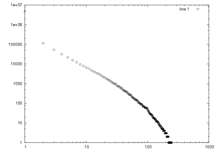 Figure 2: number of word stems with given number of word form occurrences in 5 million Hungarian language documents