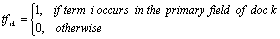 (3)As known, terms appear in the title, heading or emphasized fields in the text are more generally important for retrieval than the other body text. They represented the notion of the web pages' authors on the main content of the page. We take these special fields as Primary Feature Fields (PFF). Terms in the primary feature fields in the entire collection construct a Primary Feature Space (PFS). This space is not of uniform distribution. Therefore, terms with higher density in the space should be more significant as features. Generally, the density of the feature dimension can be represented by the term frequency in the primary feature space: