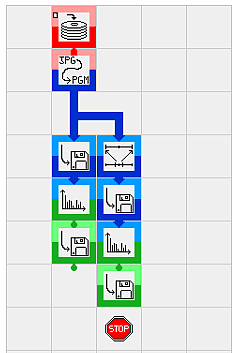 By choosing any block in a library and clicking on a cell of the programming grid, the block is placed in it. The visual program is therefore built, which results in a special data-flow graph without explicit links. Graphically, blocks appear to be fitted one in the other, like in LEGO® building blocks (from which the name Alligator stems), and data is intended to flow from up to bottom. The use of this simple strategy eliminates the undesired "spaghetti" effect typical of data-flow graphs. Each block is characterized by an icon, enclosed within a colored frame, reminding its function.