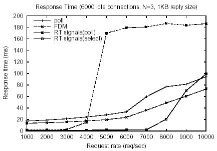 (select) at 8000 req/sec. RT signal queue overflow problem greatly influences