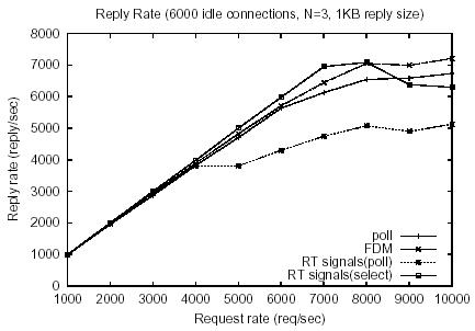 improvement of RT signals(select) over RT signals(poll). The reply rate and the