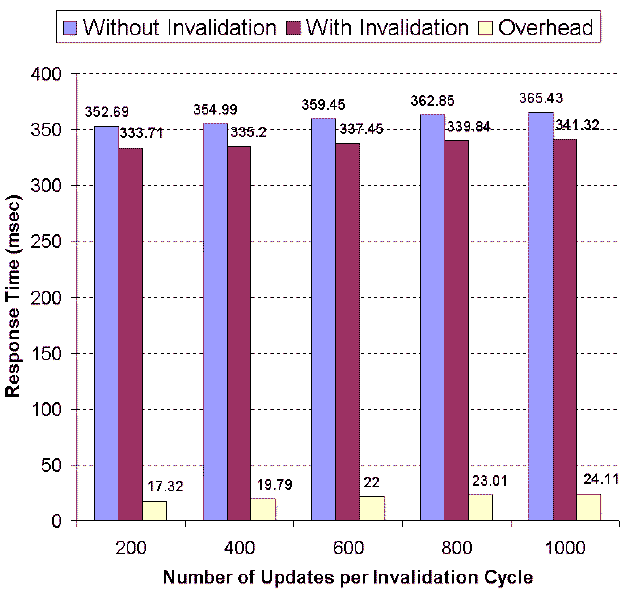 overheads due to (a) invalidation of cached dynamic content in the