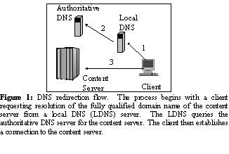 Because traffic redirection for content delivery servers is generally enabled via enhancements to the Domain Name Service (DNS), we begin with a brief overview of DNS. We then describe policies commonly invoked in intelligent DNS-based redirection schemes.