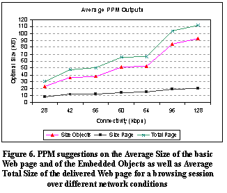 Table 5 presents the Web page characteristics suggested by the PPM model for each requested Web page during the browsing session. As can be noticed from Figure 4 the QoE-based adaptation process affected almost all of the Web pages. This was due to the fact that characteristics of the affected Web pages (see Table 3) were higher than the PPM suggested ones (Table 5).