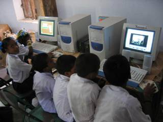 Each computer aided learning center (CALC) has between 3-10 computers. The range of the sizes of the schools visited ranged from 250 to 1100. Usually, students of one grade at a time are allowed into the computer center. The first few times of use, a subject teacher from the school or in some cases a specially appointed computer teacher assists with the start-up process, but subsequently, children are expected to be able to use the computers on their own.