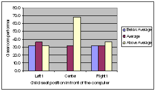 Filtering out the outliers seated to the second left or right seats in front of a computer we find that there are none of the lowest-income or below-average performance children are sitting at the center seats.