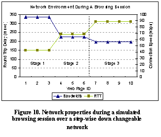 kbps bandwidth and 150 msec RTT to 56 kbps and 340 msec RTT via