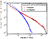 We can use the bow tie structure to show the role of users in the network, but it does not capture the level of their interaction. Looking at degree distributions is a general way to describe users relative connectedness in a large complex network [21]. An interesting common feature of many known complex networks is their scale-free nature. In a scale-free network, the majority of nodes are each connected to just a handful of neighbors, but there are a few hub nodes that have a disproportionately large number of neighbors. Figure 4 shows the indegree distribution histogram for the Java Forum network. It is highly skewed (and in fact scale-free except for a cutoff at very high degrees), similar to a distribution observed for Web pages and for co-authorship networks. The scale-free degree distribution is a reflection of the highly uneven distribution of participation. Instead of everybody helping each other equally, in the Java Forum, there are some extremely active users who answer a lot of questions while a majority of users answer only a few. Likewise, many users ask only a single question, but some ask a dozen or more.