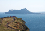 Seongsan Ilchulbong Peak rose from under the sea in a volcanic eruption over 100,000 years ago. Located on the eastern end of Jejudo Island, there is a huge crater at the top of Seongsan Ilchulbong Peak. The crater is about 600m in diameter and 90m high. With the 99 sharp rocks surrounding the crater, it looks like a gigantic crown. While the southeast and north sides are cliffs, the northwest side is a verdant grassy hill that is connected to the Seongsan Village. The ridge provides an ideal spot for walks and for horse riding as well.