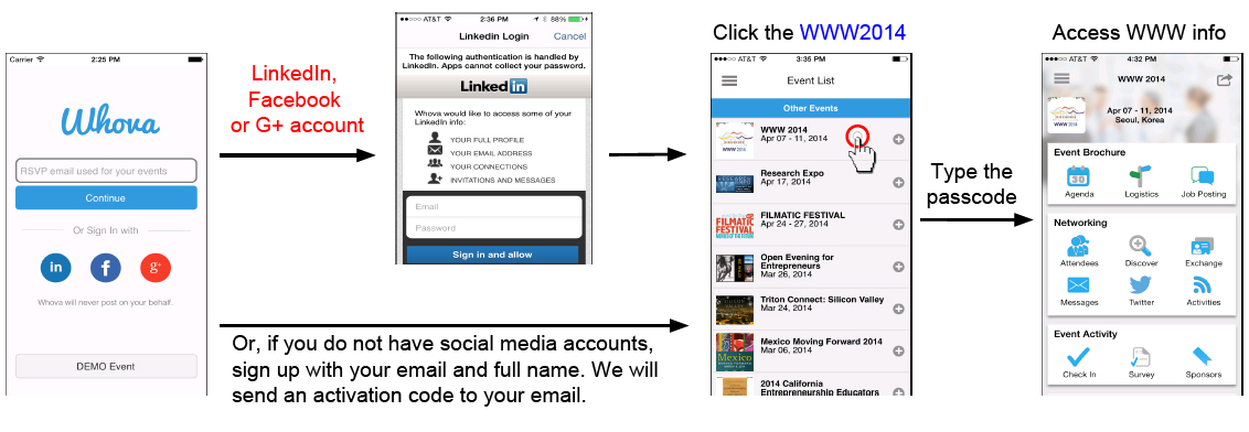 - Please download the free Whova event app on your mobile device before the conference and plan ahead to make the most of your WWW2014 experience. The app offers a unique set of features to help you access mobile brochures and network at the conference.
