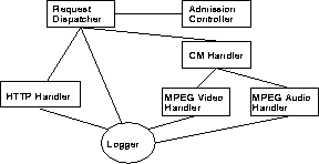 Traditional HTTP servers can do without admission control because document sizes are small, and request streams are bursty[16]. Requests are simply queued before service, and most documents can be handled quickly. In contrast, with continuous media transmissions in a video server, file sizes are large, and real time data streams have stringent time constraints. The server must ensure that it has enough network bandwidth and processing power to maintain service qualities to current requests. The criteria used to evaluate requests may be based on the requested bandwidth, server available bandwidth, and system CPU load. Our current system simply limits the number of concurrent streams to a fixed number. However, the admission control policy is flexible and can be made more sophisticated.
