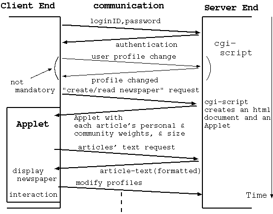 Figure 2 shows the user's view of a session with the personalized newspaper, and Figure 3 shows the communication that occurs between the server and the client during this process.
