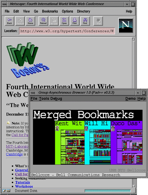 Figure 4 shows a screen capture of our Pad++ multitree browser together with a standard HTML client that may be controlled through Pad++. The Pad++ client is automatically invoked as a helper application from the file returned by the GAB server, which it tags with a Pad++ MIME type.