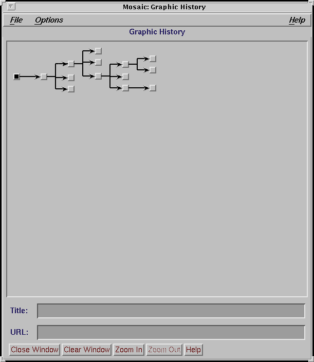 History information is stored in a hash table and a tree structure that is separate from NCSA Mosaic's internal data structures. Care was taken to adhere to the same style of interface presented by Mosaic visually, while trying to keep the changes to the existing Mosaic source to a minimum. The view does modify the existing code slightly to inform the graphic history view when certain actions take place in the Document View, and modifications were made to the HTML widget to allow the widget to generate a copy of the Document View. The Graphic History view also relies on Mosaic's "Xmx" wrapper for Motif.