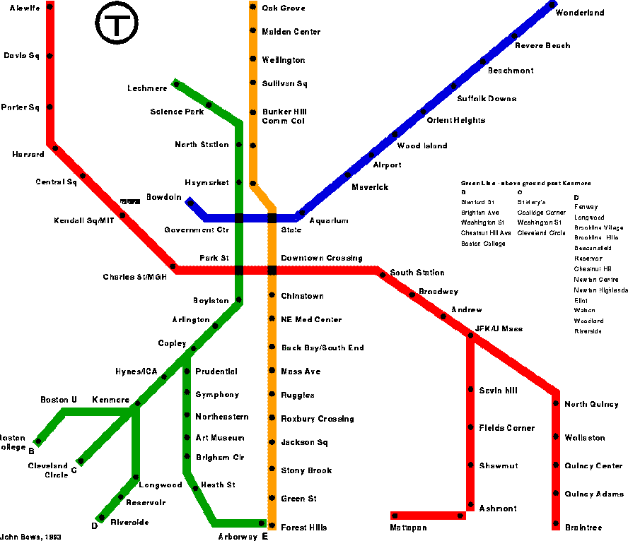 The best way to get around the city is to take the MBTA, Boston's subway and trolley system, otherwise known as the "T". A map of the system will show you the lines and stops. The closest stop to the conference is Copley, on the Green Line. Tokens are US$ 0.85 from any stop to any stop.