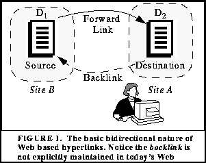 For example, suppose the user is visiting a page on computer graphics at Site A, as in Figure 1. The user has no navigational knowledge of the forward link from the source document on Site B to the destination document on Site A, though the sites contain related material. We conjecture that for any given Web page, a user should have the ability to view such related pages. In a bidirectional hyperlink system, this information is readily accessible, but the Web uses a unidirectional hyperlink model, which requires additional facilities to ascertain this information.