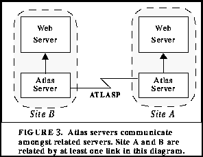 Additional hooks are in place to allow population of hyperlinks by examining the inflow of HTTP "Referrer" field headers. This ability to use outside information to populate the database greatly adds to the usefulness of the Atlas system initially, but will become less important as the saturation of Atlas servers increases.