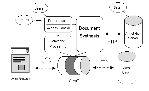 For the purposes of our prototype, it was not important how or where the annotations were to be stored, only that the GrAnT could easily store and retrieve them via a well-defined mechanism. In the current implementation of the prototype, the mechanism is the HTTP protocol and the storage medium is a slightly adapted version of the Stanford annotation server.