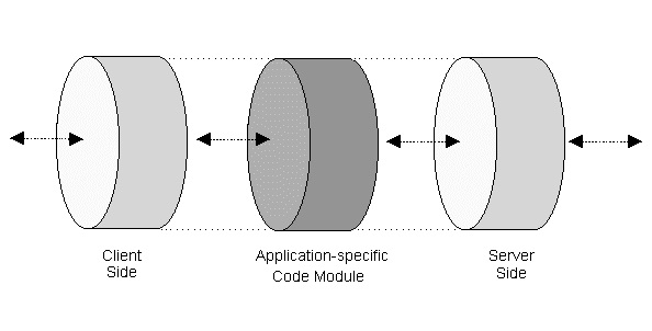 We built the GrAnT by using a toolkit [OSFa] developed at the OSF Research Institute to allow a transducer developer to focus on the application-specific aspects of the transducer, instances of which we generically refer to as Strands (for "Stream TRANsducing Daemons"). As illustrated in Figure 3, the toolkit provides an `outer shell' that manages the connections toward the client and toward the server, between which the application-specific code module is placed.
