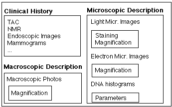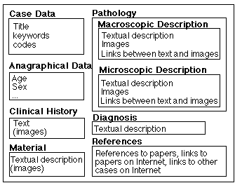 A standard data analysis has been carried out, and a model of the histopathologic case has been developed as shown in Figure 1. The model takes into account also the needs of the pathologists, such as the external references.