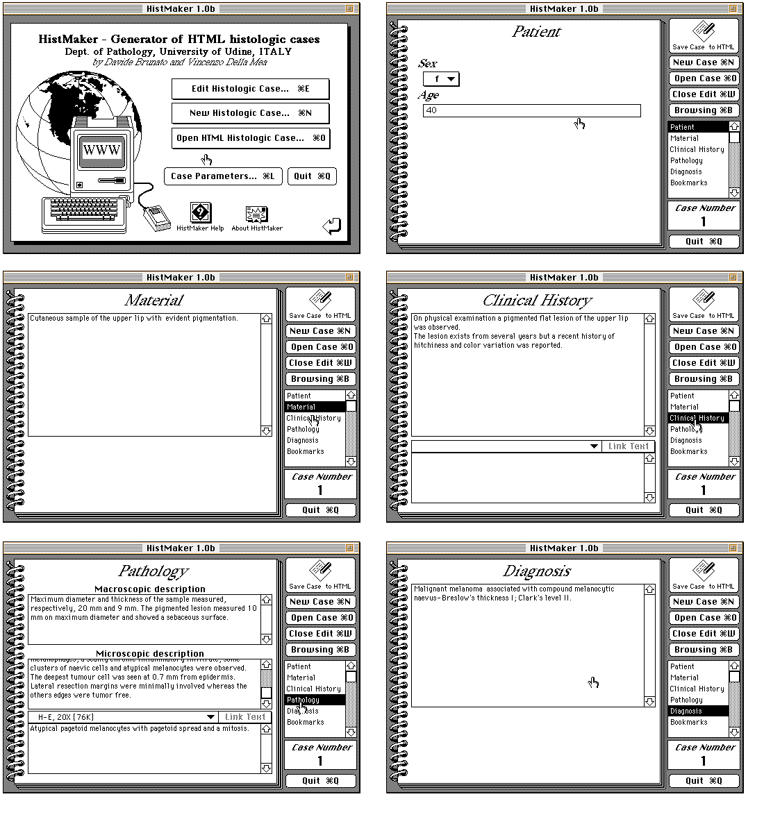 Figure 3 - Six snapshots from the user interface of HistMaker, filled with the data corresponding to a case.