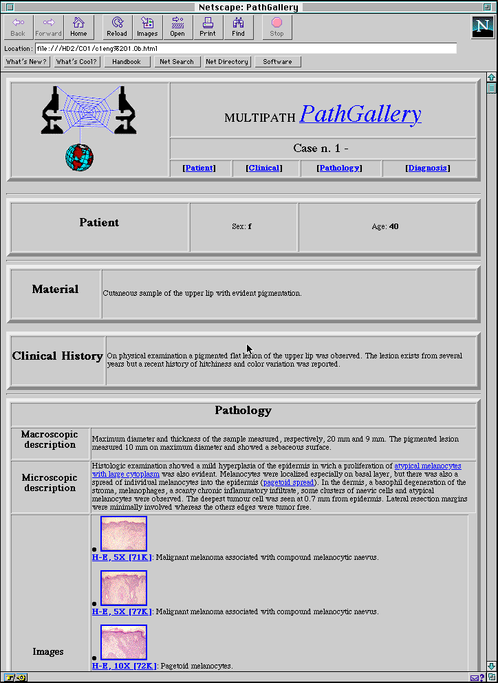 This feature, together with image linking, turns the hypermedia histopathologic case from a structured to a semi-structured document model, making it a starting point for cognitive explorations on the Internet.