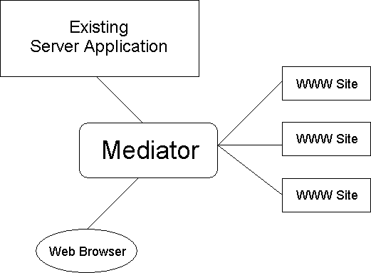 Some have used CGI programs to accomplish the tasks of the mediator[2]. A normal HTTP server is set up somewhere on the same LAN as the existing server application. specialized CGI programs are written to handle user requests, and the user is presented with an HTML Forms-based interface. This is unsatisfactory for a number of reasons: