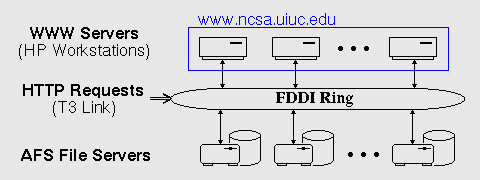 servers via a 100 megabit/second Fiber Distribution Data Interface (FDDI) ring.