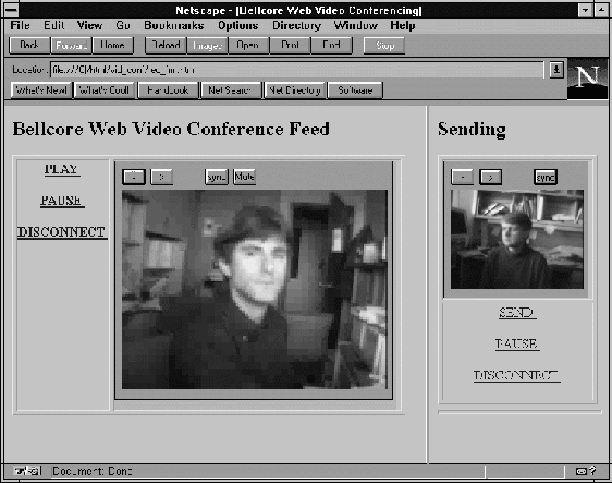 There are several choices for how the multimedia should be displayed to the client. Some real-time feeds (e.g., a MIDI feed) do not need a visual display, others require screen area (e.g., to display a video), and still others require controls (play and stop buttons). For those clients which require a display area, two choices are possible: the widget can be a window external to the browser or it can be embedded in the browser. Examples of these two classes of applications are the VDO video player[3] or the Vosaic system[2] and the Xing video browser[4].