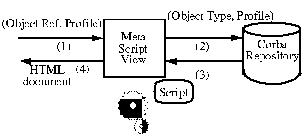 - It retrieves from the CorbaWeb Repository the appropriate view script according to the object type and the profile (2)