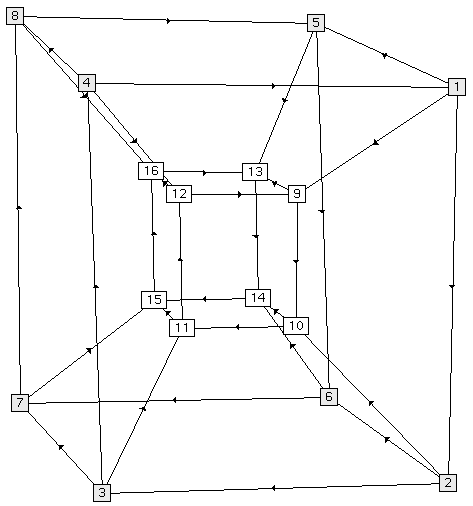 In Figure 7 we can see the outcome of running the hierarchical embedding algorithm on the hypercube. This embedding is of some interest, since, despite its complex nature, it has almost the minimum possible number of edge crossings.