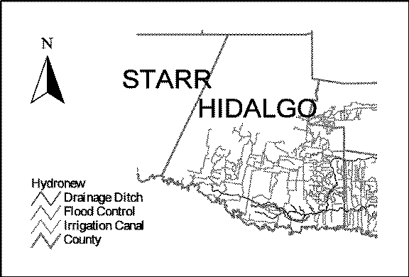 Geographic information systems store and access many and varied kinds of information. Typical sorts of information range from geologic and biologic inventory maps to census and remote sensing data[4, 5]. Use of such information is increasing in a wide range of decision making and research contexts. Any collection of GIS information would include vector maps, raster images, tables, graphs, and text which are interrelated and dependent on each other. Thus, GIS users can manipulate the database by interacting with any form of the data, whether geographic, tabular, or text. These basic data are used to generate different output maps with associated tabular data for different users. For example, a GIS database might have files of irrigation canals, such as the network depicted in Figure 1 for counties in south Texas. Users may be interested in overlaying flood channel data to determine suitable locations for water delivery and flood mitigation considerations. This could be of interest to builders, home buyers, planning groups, or government agencies. A typical GIS maintains the geographic information in the form of attribute tables, polygons and image maps. Depending the type of information and analysis of interest to users, the GIS performs operations to generate the results and display them in a suitable format.