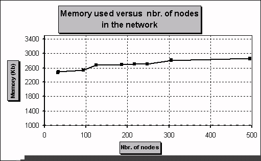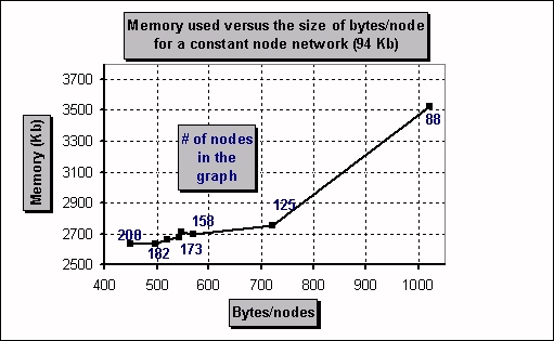 Figure 6: Memory used versus the size of bytes/nodes for a constant graph size (94Kb)